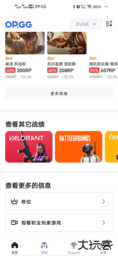 1、下载安装opgg国内版,点击进入首页,选择【esports】