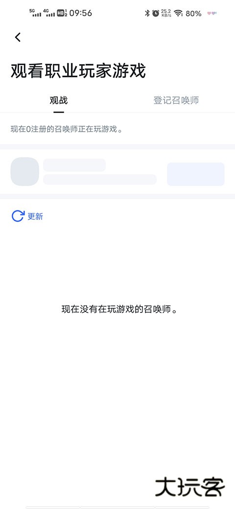 2、进入后,选择自己喜欢的玩家进行观战即可,如若未到直播时间,则会显示没有在玩游戏的召唤师。