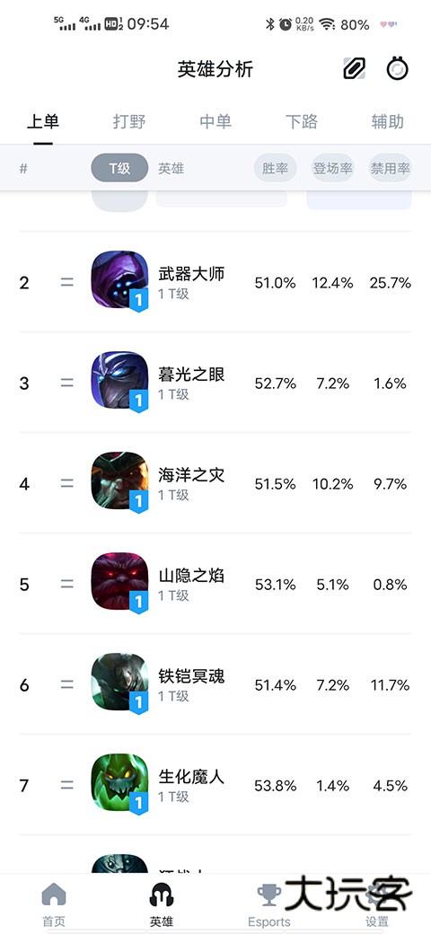 3、进入之后,就可以查看到该英雄的登场率和胜率。