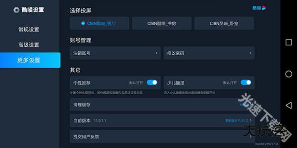 2、然后进入应用的设置页面(在首页处点击我的,然后点击设置进入)中点击【更多设置】选择投屏设备,即可自动投屏上去