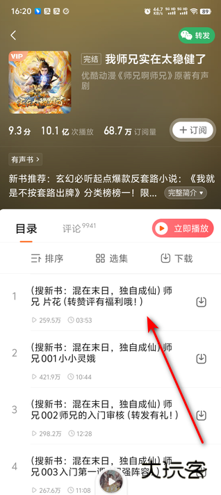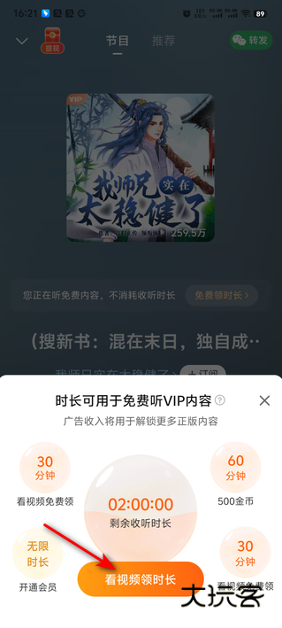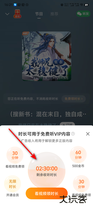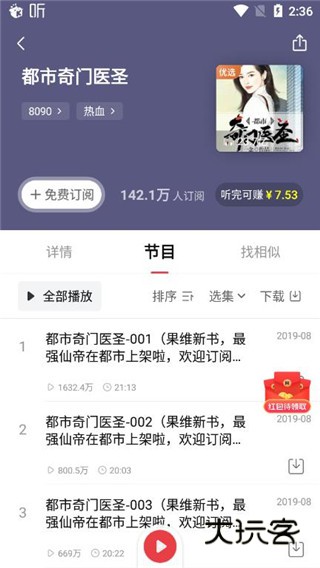 3、看到详细的小说目录,听小说还能赚取零花钱