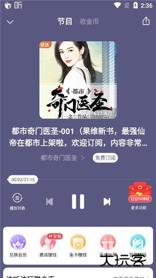 极速版:核心特色是“听书赚钱”,用户通过收听节目、签到、邀请好友等任务赚取金币,可提现或兑换奖品,适合希望边听边赚的用户。
