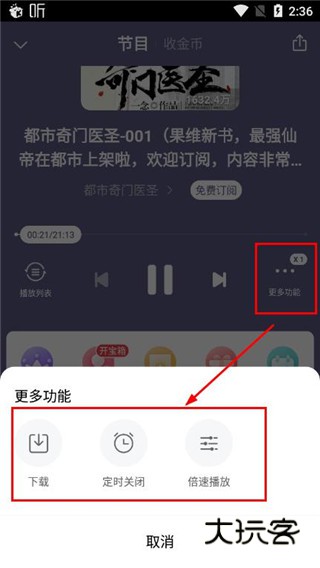 5、选择更多功能,可以开启下载、定时关闭、倍速播放等,自由设置