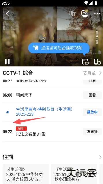 2、错过播放的节目,完全不用担心,点击播放列表回看之前发布的直播内容,轻松搞定。