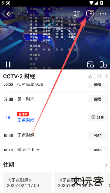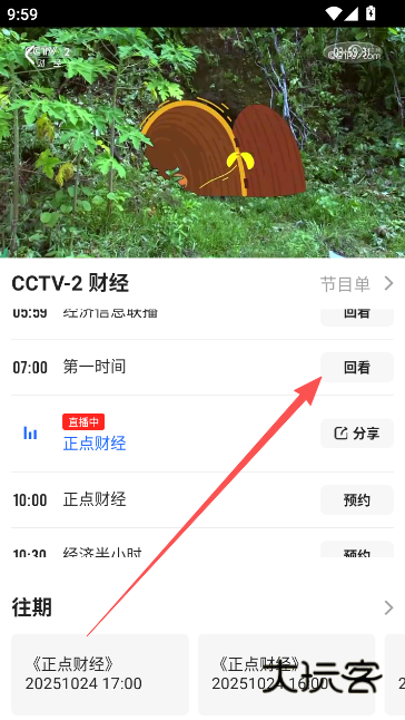 1、cntv客户端回看功能操作,在播放页面有展示。