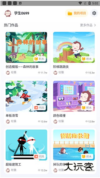 3、点击一个作品,你可以进行查看代码模块,查看作品的代码结构;