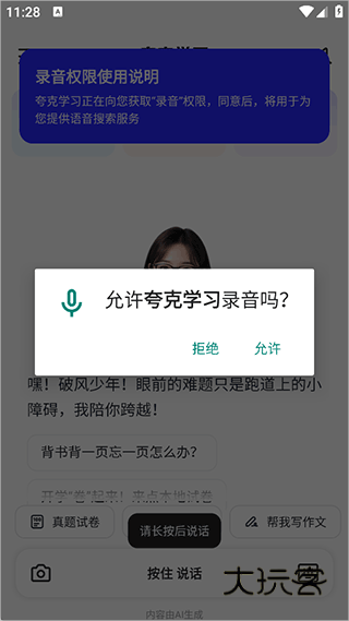 3、接着就可以长按说话按钮,将学习的疑问说给它听