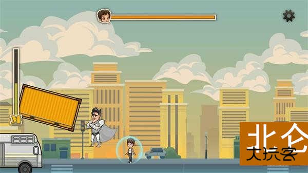 玩家需要通过操作超人撞击物体来保护角色安全,紧张与趣味并存,形成独特的游戏节奏。
