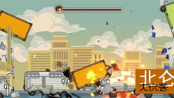 4、坚持一段时间后就会进入boss战,滑动屏幕可以移动角色躲避高楼,击中boss可以减少血量,当血量为零时就可以通关。