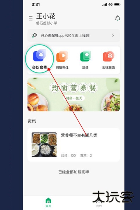 5、选择套餐及缴纳餐费之后用户就需要先选择套餐,在首页点击缴纳餐费即可进入。