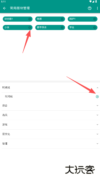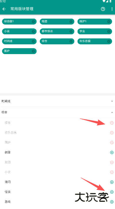 2、+号符号代表添加内容到常用版块,如果是删除直接点击x符号去除。