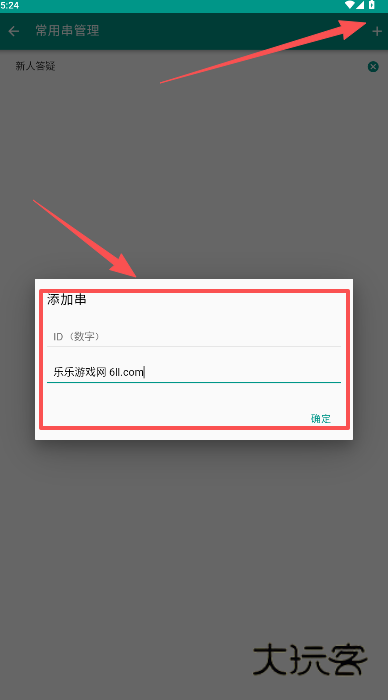 3、在常用串管理功能页面点击右上+号,完成串的添加,注意输入的数字ID和备注一定要写详细,点选确定提交完成此项操作。
