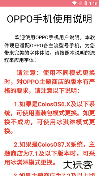 应用怎么用?其实在应用中就有相关教程的,不管用户是什么手机型号,打开字体美化大量app后进入页面中直接点击其右上角的操作方式引导图标(下图绿色箭头所指区)
