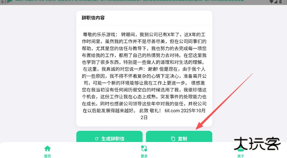 一键复制与多格式导出:生成辞职信后,支持一键复制文本内容,方便直接粘贴到邮件或文档中。同时,也提供如TXT、PDF等格式的导出功能,方便保存与打印。