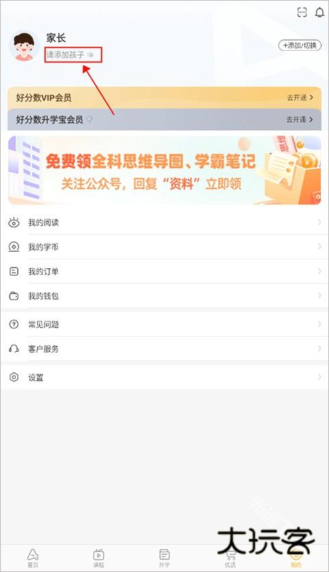 1、首先在我的页面点击头像下方的“请添加孩子”