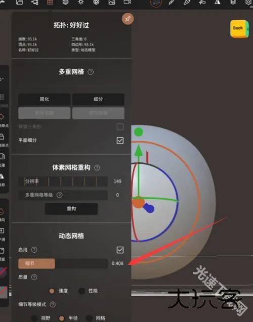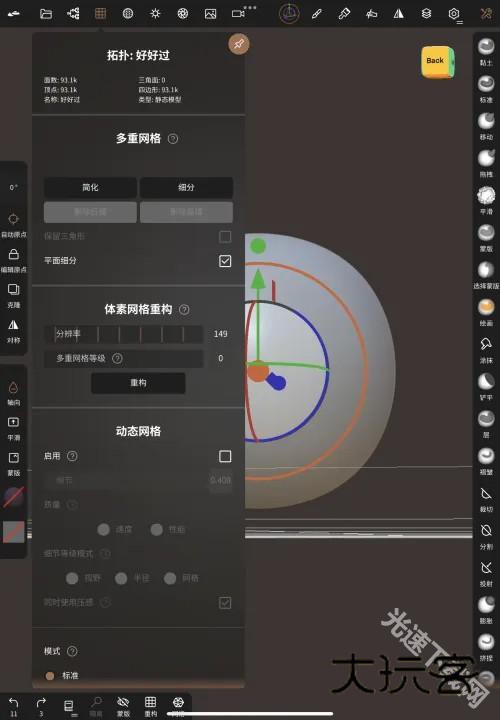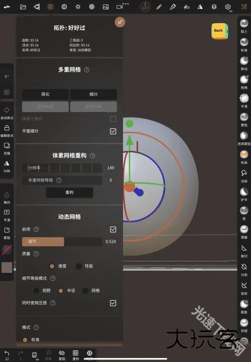 5、根据动态网格的效果,在雕刻过程中,可以自动为模型添加网格。