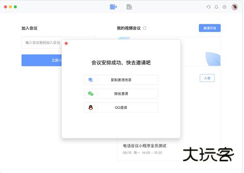 会议预约成功后,可通过微信、qq、复制会议信息等方式邀请和通知参会人开会;