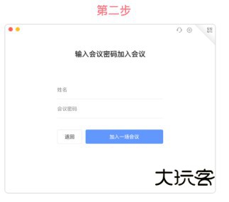 或点击「加入一场会议」输入姓名,粘贴会议密码或参会链接加入会议。
