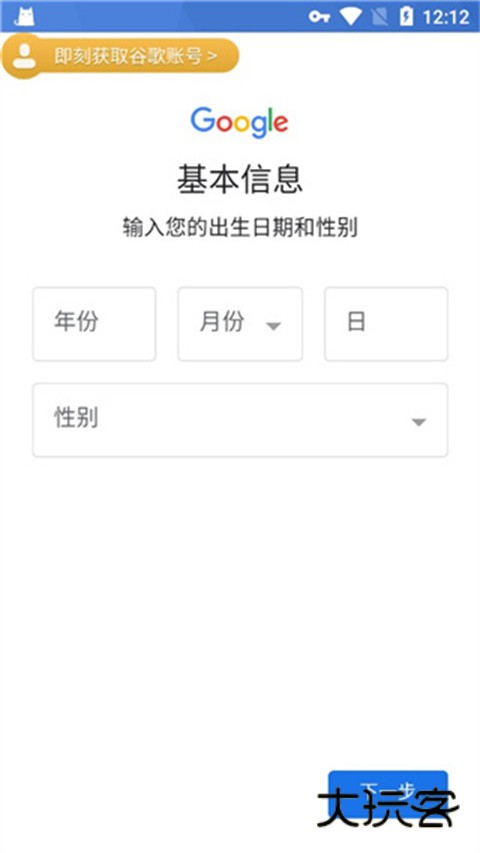 8、填写出生日期和性别,这里要注意,我们一定要选择18岁以上的年龄,成年即可,填好点下一步;