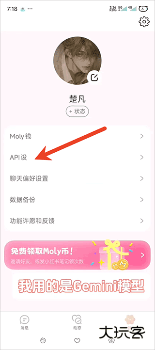 1、使用微信登录app后首先进入个人登录界面中选择【api设】点击