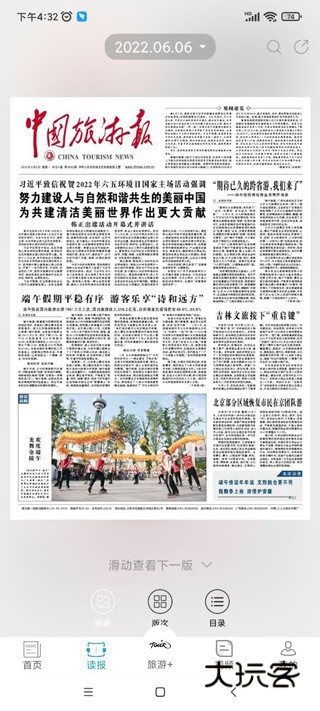 3、读报功能可通过手指滑动切换报纸版面,查看不同内容。