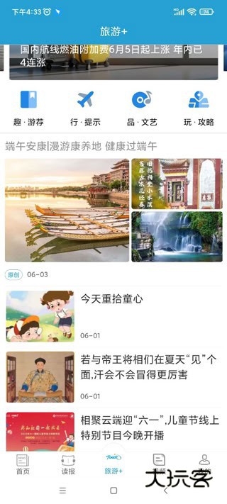 4、点击“旅游 +”板块,提供旅游推荐、攻略、提示等内容。