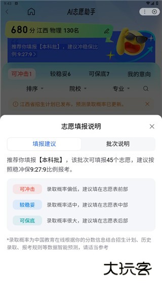 3、应用界面简单明了,操作简单易懂。考生只需要打开软件,选择高考省份、批次、科目、考试成绩等信息,即可获得匹配的学院和专业推荐。