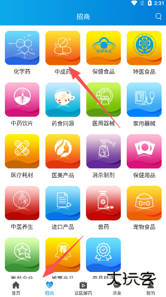 2、选择你要进行招商操作的药品类型,比如花灯下载小编这里选择的是中成药。