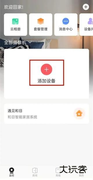1、打开和家亲最新版,点击添加设备。