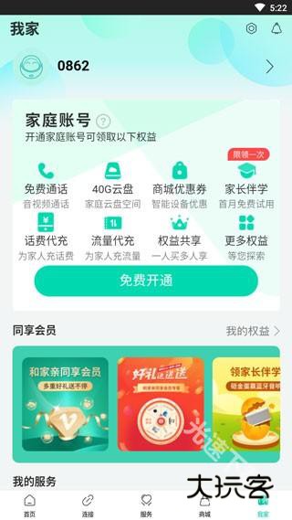 5、最后,点击“我家”,你可以在这里开通家庭账号,享受全家服务。