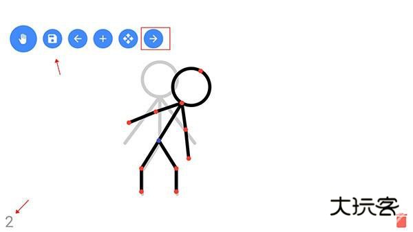 7、当我们设计完第一页动画后,点击工具栏的“→”可以进行第二页动画制作,同上方可保存当前动画;