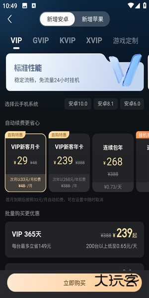 1、授权是指当拥有一台”VIP、GVIP或KVIP云手机“时,可把”云手机“的使用权授予他人使用,类似设备共享但是授权方与被授权方不能同时进入操控;