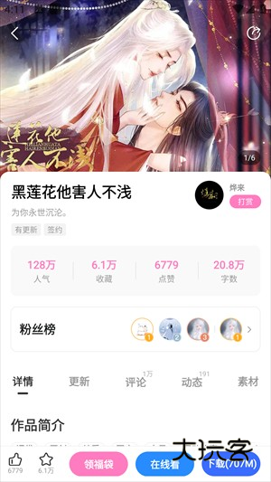 2、点击自己感兴趣的作品,查看作品的详情、评论等等,可以选择点击在线看、下载。