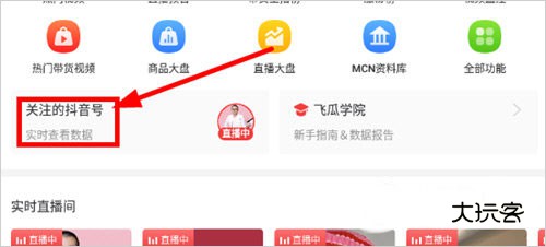 1、在飞瓜数据首页点击“关注的抖音号”;