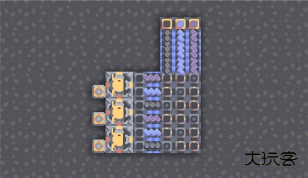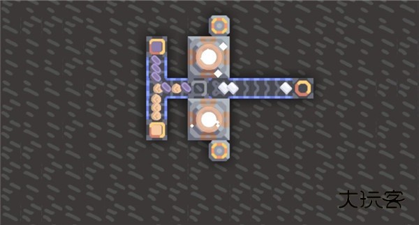 双原料,代表是小硅厂,其他还有爆炸混合物,玻璃,魂灵修理机等。无产出时,纵向的传送带可以删除。只做一边也没问题的~