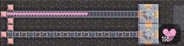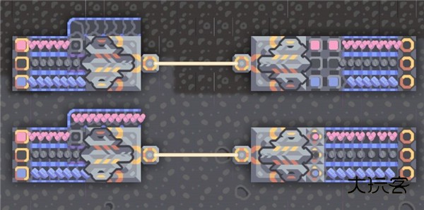 注意有产出时,务必像双原料的例图一样留出传送带,否则会产物进入路由器会卡住。路由器的说明中写了不要将之与生产建筑相连。(除非该路由器还有出路 如单原料的例图)