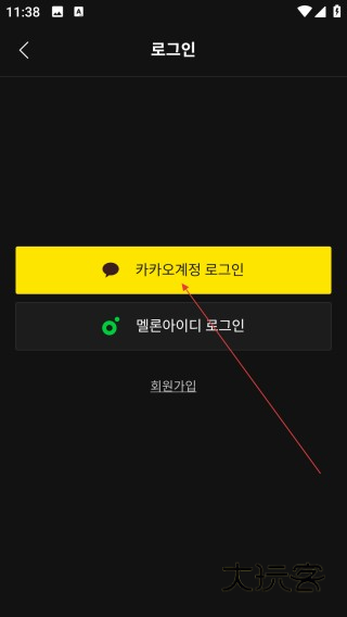 3、在登录页,选【카카오계정 로그인】完成账号登录。