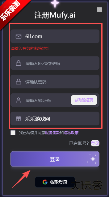 3、输入邮箱、密码,验证码等信息后,点击注册即可