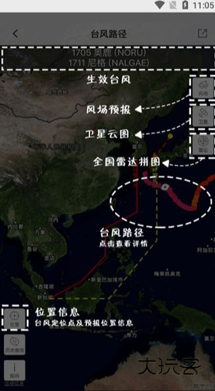 5、天气地图:雷达回波、实时闪电定位、台风路径图,精美易懂。