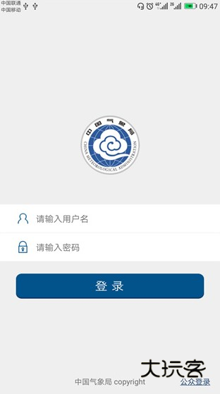 1、本页面下载安装中国气象app,打开软件,进入登录界面,输入用户名、密码,点击登录,还可点击右下方的公众登录;