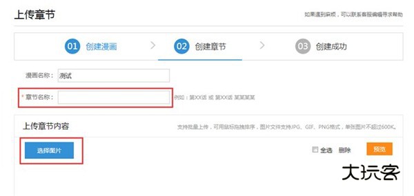 (1)、在创建章节页面,填写章节标题,并点击选择图片按钮上传图片,最后点击确定按钮即发布成功。