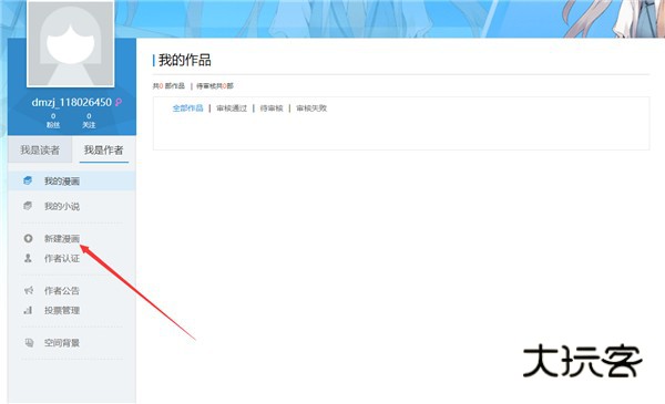 (1)、通过https://www.idmzj.com/网站右上方导航栏的“上传漫画”按钮或者个人空间->我是作者中的“新建漫画”进入漫画创建页面。