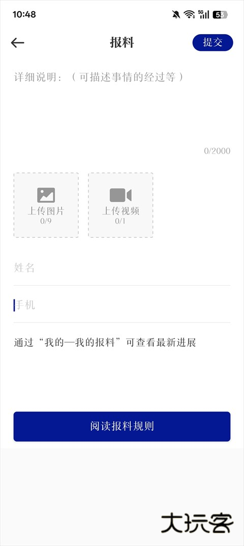 4、阅读好之后就可以完善报料信息,最后提交即可