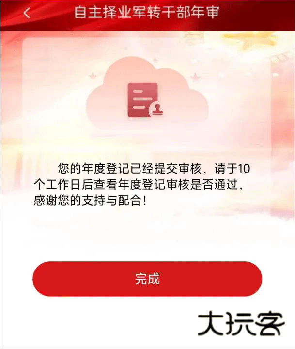 第六步:人脸识别认证后,完成身份核验,点击“确定”按钮,完成年审信息的提交。