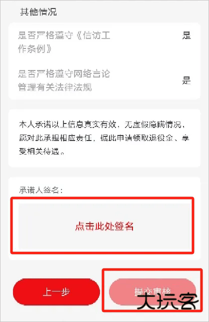 第五步:完成填写后,在信息确认页面进行确认,并手写签名并提交审核。