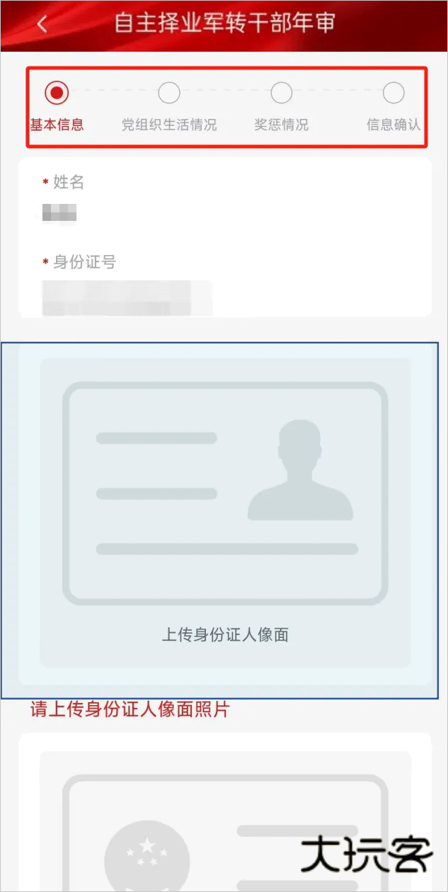 第四步:根据提示,依次进行基础信息、党组织生活情况、奖惩情况信息填报,进行填报时页面自动带入上一年填报的信息,可根据实际情况在此基础上进行相应修改,如存在缺失的信息项则进行填写补充。