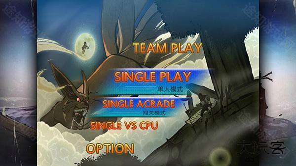 1、打开火影忍者究极风暴4手机版,进入游戏主界面,包括【TEAM PLAY】联机模式、【SINGLE PALY】单人模式、【SINGLE ACRADE】闯关模式和【SINGLE VS CPU】人机对战模式,玩家可自行选择,这里以【单人模式】为例,