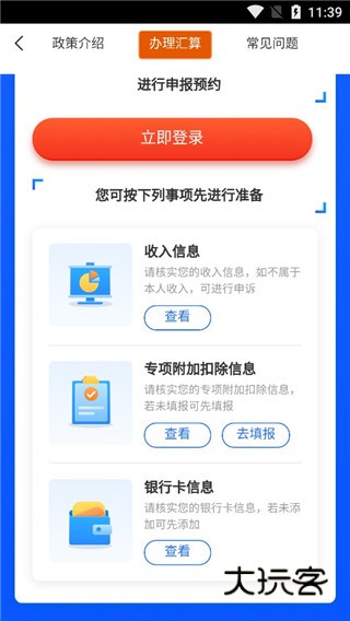 2、然后我们可以选择办理汇算,用户先登录实名认证哦