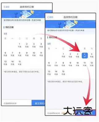 选中标记为“可选”的日期后,点击底部“提交预约申请”按钮提交