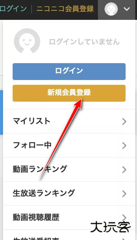 1、点击右上角头像,点击新规会员登録;
